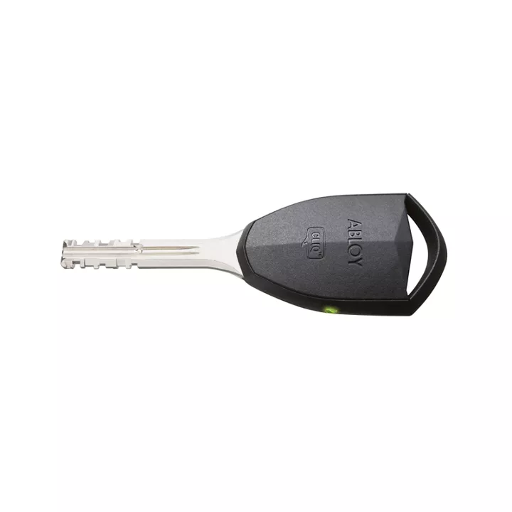 CLIQ Key Material: The key has a metal shaft and a plastic bow. The CLIQ electronics is located under the plastic cover.