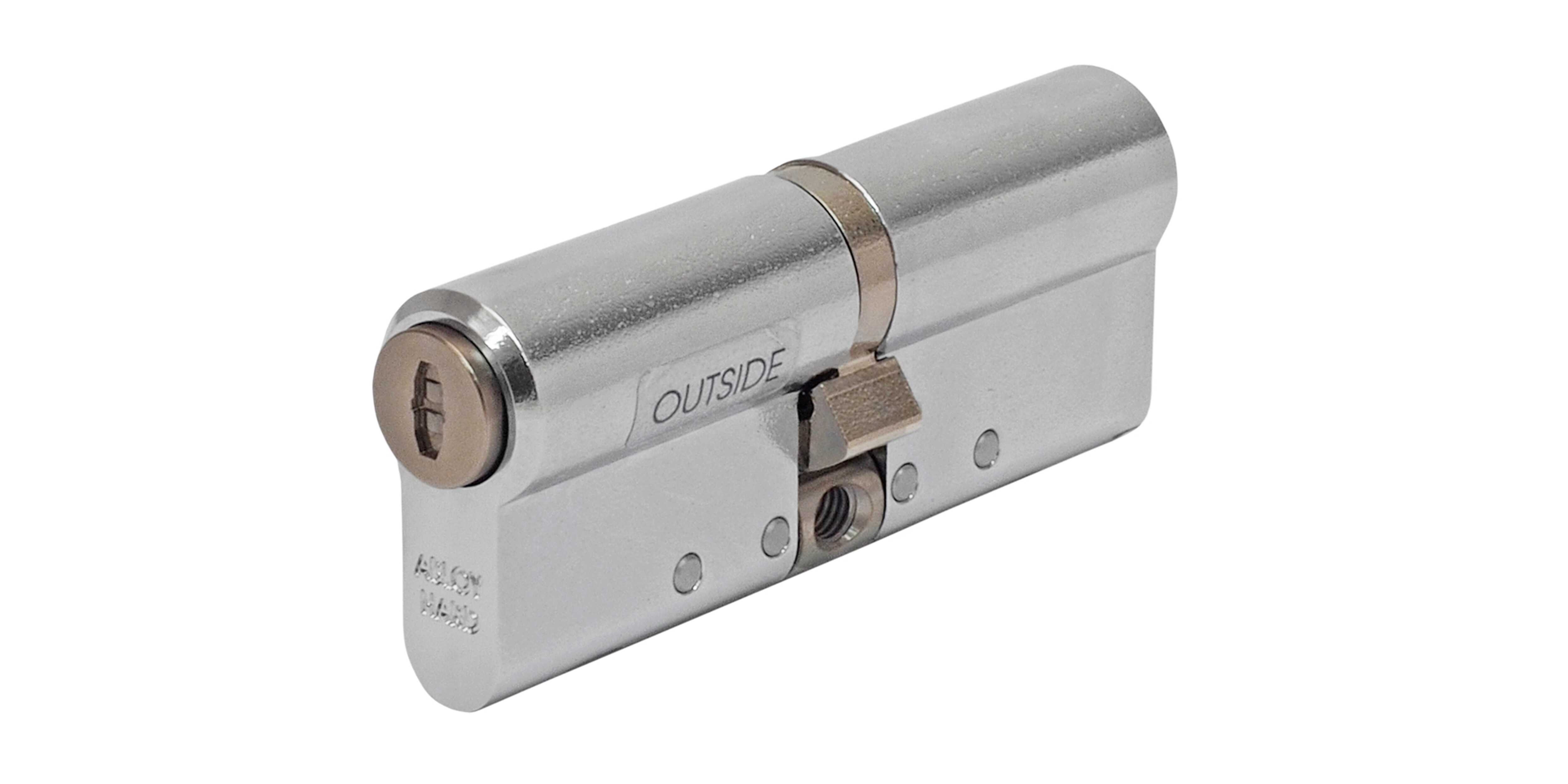 PROTEC² CLIQ double cylinder for solid doors mortice lock cases. Both are hardened steel CLIQ cylinders. Dust cover in outside cylinder. Adjustable during installation to match different door thicknesses. Patented PROTEC² (T) key system.