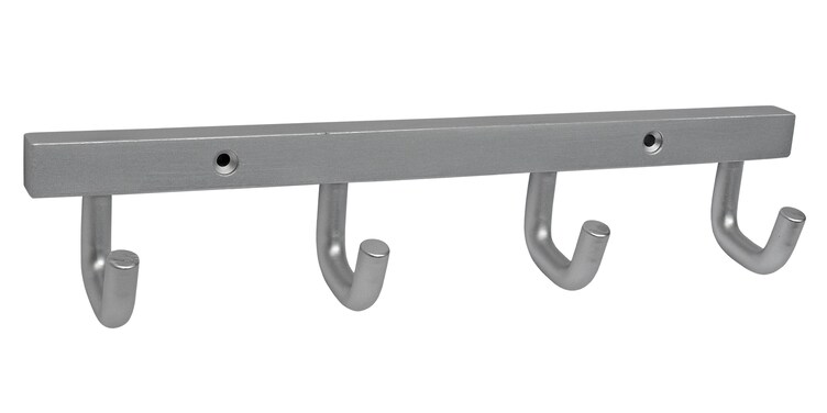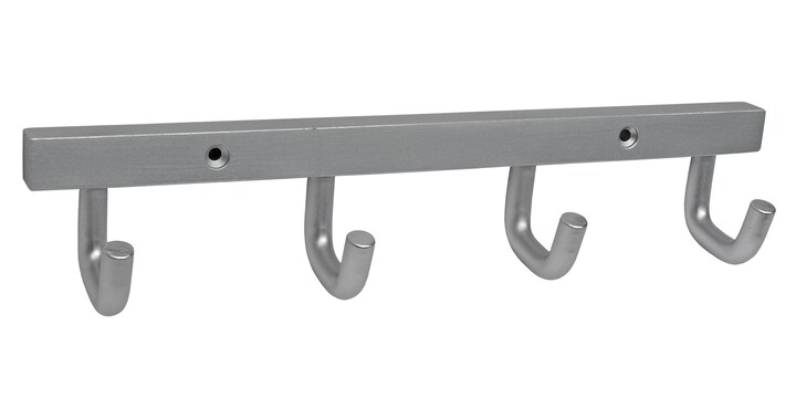 Coat hook with four hooks. Available with anodized aluminum surface treatment.