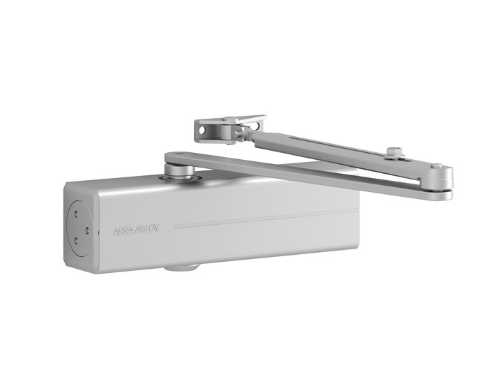 Can be used with integrated concealed mounting plate, suitable for fire and smoke protection doors. Can be used for left and right-handed doors. 14 mm height adjustable arm system for ease of fitting. Closing speed, latching speed and backcheck adjustable via front facing regulating valves. Thermodynamic valves for consistent performance. Variable adjustable closing force. Opening angle up to 180°. Large range of applications. Certified in compliance with EN1154, size 3-6 with link arm and size 1-3 with guide rail. Suitable for fire and smoke protection doors. For single action doors up to 950 mm wide (guide rail) and 1400 mm (link arm).