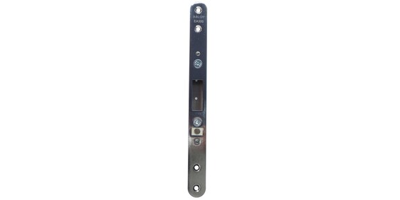 Adjustable striker plate for rebated doors with two latch housing. Plate width 40 mm