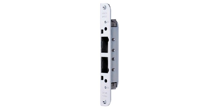 Adjustable striker plate for flushed doors with two latch housing. Plate width 40 mm