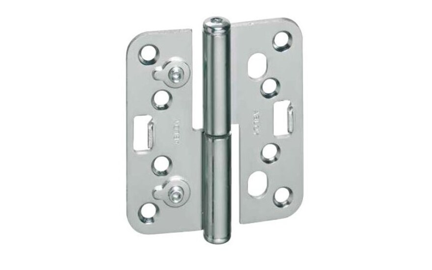 It allows for stepless vertical adjustment of the door (-1/+4 mm) and lateral adjustment (+3 mm).