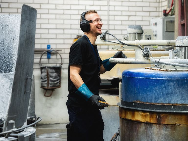 Karkaisijana Tomi pintakarkaisee eli lämpökäsittelee riippulukkorunkoja ja niihin kuuluvia pieniä osia, mikä vahvistaa lukkoja. "Tieto siitä, että lukkorungot ovat kovia ja kestäviä, luo merkitystä omaan työhön", Tomi kertoo. Hänestä on arvokasta olla konkreettisesti mukana tekemässä ensiluokkaista asiakastyytyväisyyttä.