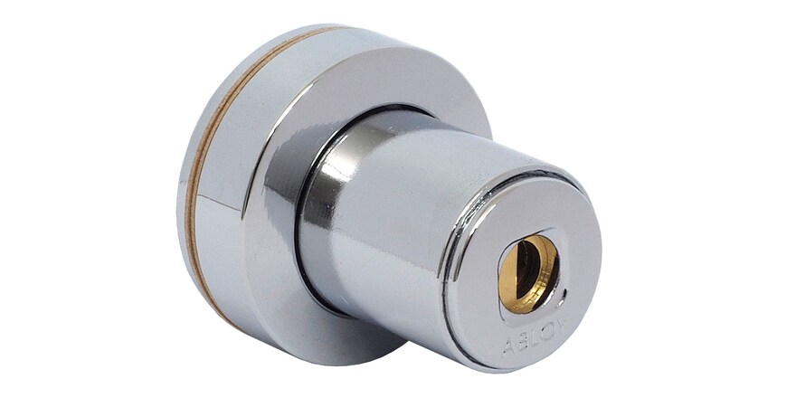 Painonappilukko. Avainpesän pituus on 28 mm. Kromattu lukko, telki niklattua terästä. Lukitus ilman avainta.