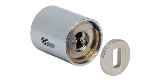 Metallikaustelukko. Avain poistettavissa vain lukittu-asennoissa. Lukon pituus 39,5mm.