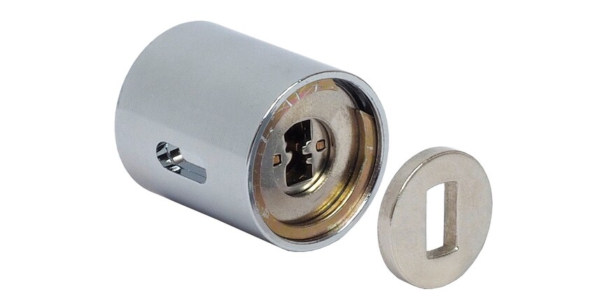 Metallikalustelukko. Avain poistettavissa vain lukittu-asennoissa. Lukon pituus 29 mm.