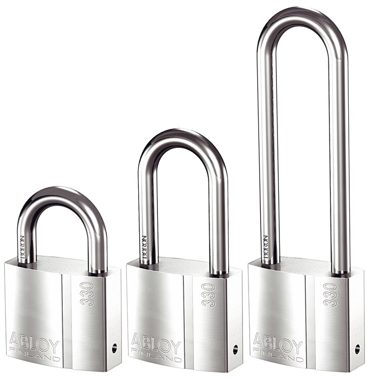 EN3 hyväksytty. Riippulukko kevyeen lukintaan. Sankakorkeusvaihtoehtot ovat 25 mm ja 50 mm ja sangan halkaisija on 8 mm.