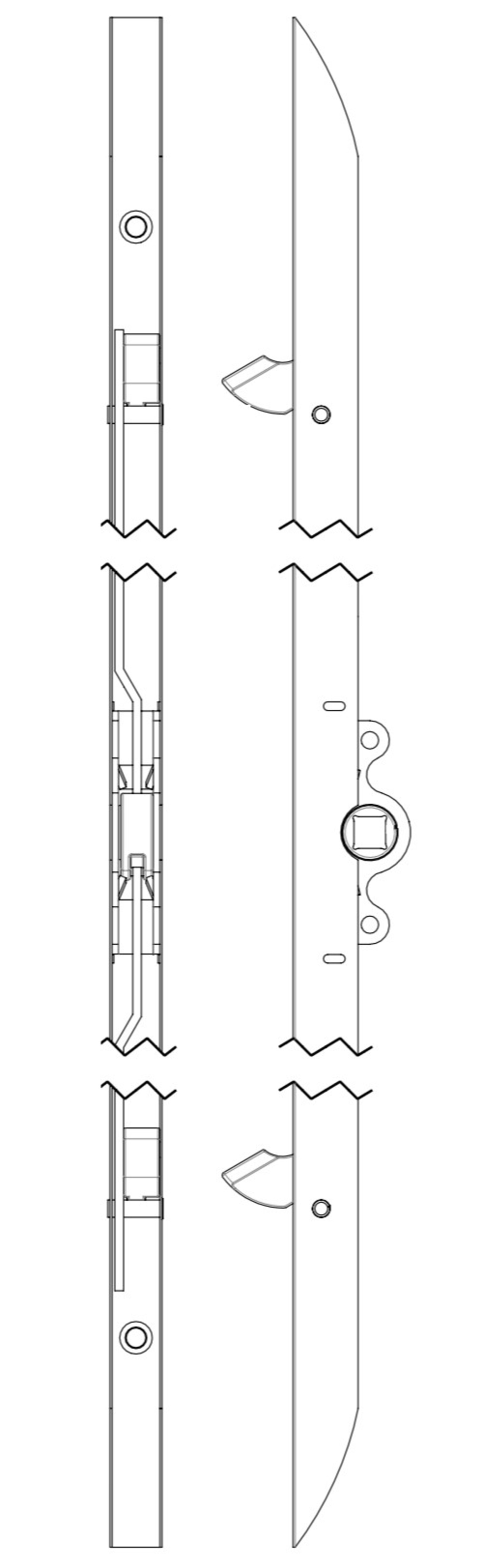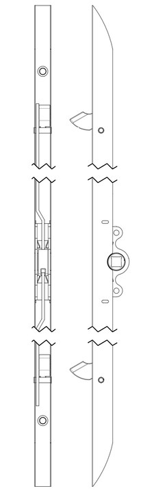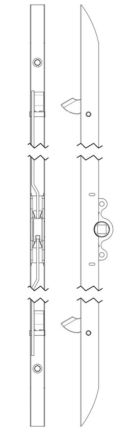 3-telkinen pitkäsalpa (WF741), jossa lukkopesä on salvan keskellä.