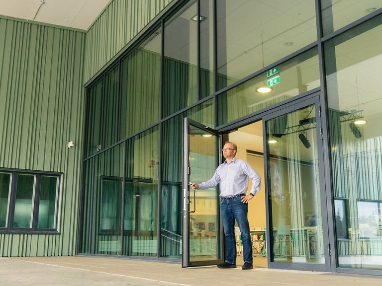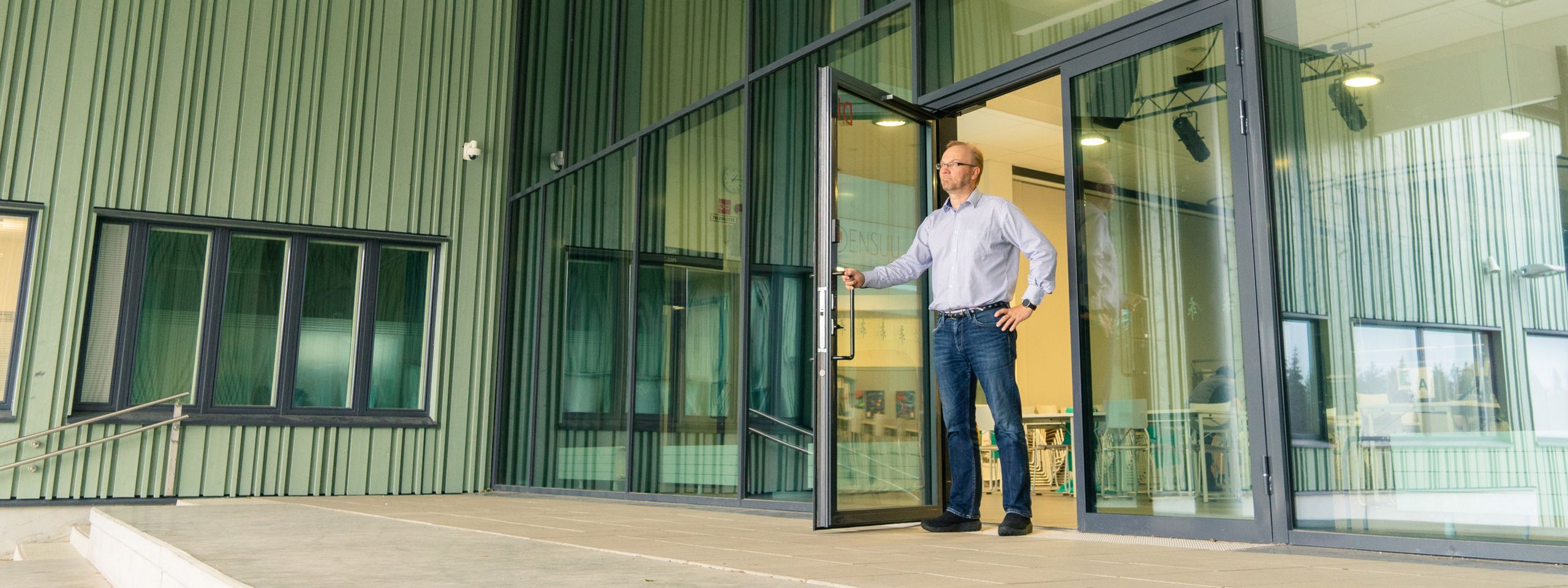 Jyrki Huusko on toiminut Nepenmäen koulun rehtorina jo 18 vuotta. Vaikka rehtorikokemusta on kertynyt jo lähes kaksi vuosikymmentä, on tämä vuosi ollut Huuskollekin poikkeuksellinen. Kun uuteen koulurakennukseen alettiin suunnitella syksyllä 2018 lukitusjärjestelmää, kokonaisuuteen valikoitui mukaan myös haitallisia bakteereja ja mikrobeja tuhoava ABLOY ACTIVE -pinnoite. Kukaan ei osannut silloin edes kuvitella, kuinka merkittävään rooliin ratkaisu nousisi parin vuoden kuluttua. ”Vaikka nyt poikkeusaikoina käsiä on pesty ja desinfioitu koko ajan, niin en kyllä yhtään harmittele sitä, että meidän koulumme ovenpainikkeissa on bakteereja tuhoava pinnoite”, Huusko kertoo.