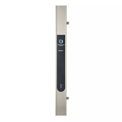 Dans le respect du code du travail, pour une porte susceptible d'être utilisée à l'évacuation, le produit peut être équipé soit d’un cylindre profil européen à bouton, permettant par un geste simple de l’intérieur de manoeuvrer mécaniquement les pênes, et pour plus de sécurité préférez l’option bouton d’urgence, qui laisse l’usage du cylindre à d’autres fonctions de contrôle d’accès. En l’absence de tension le cylindre assure également le reverrouillage.